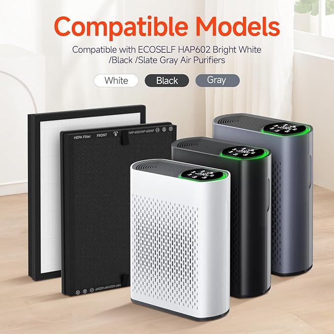 - 【Compatible with ECOSELF HAP602 Air Purifi-er】 Designed specifically to be perfectly compatible with ECOSELF HAP602 Matte Black / White model Air Purifi-er, ensuring a snugly fit and optimal performance. Please make sure your device's model number before placing an order