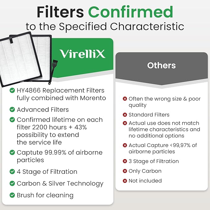 - 𝗛𝗬𝟰𝟴𝟲𝟲 𝗔𝗶𝗿 𝗙𝗶𝗹𝘁𝗲𝗿 𝗥𝗲𝗽𝗹𝗮𝗰𝗲𝗺𝗲𝗻𝘁: The pack contains of 4 pieces and brush; each filter has a service life of 3145 hours; the air purifier filter is specially designed to be compatible with MORENTO HY4866, WESTHEY HY4866 and YIOU M1 air purifiers; important to check the model before purchase