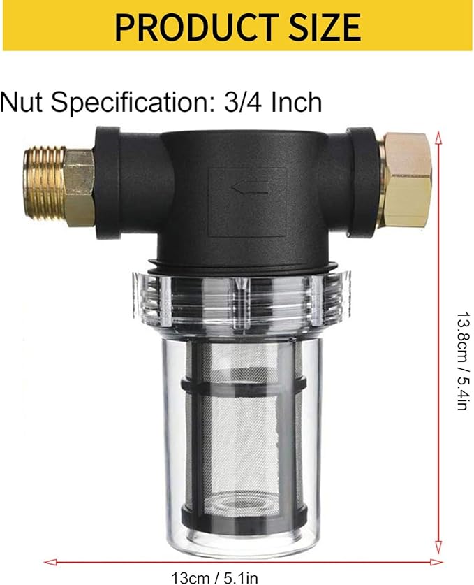 - 【Easy to Apply】Water hose inline filter connects to pressure washer inlet, standard garden hose and home water spigot.As garden hose filter, it can protect pressure washer parts avoiding blocked or damaged by sands, debris.