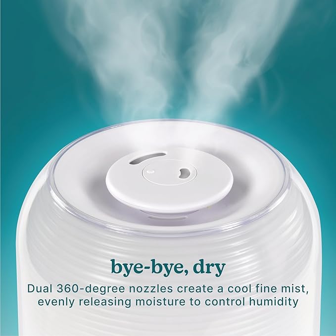 - RELIEVE DRYNESS: Dual 360-degree mist nozzles disperse visible ultrasonic cool mist to combat dry air