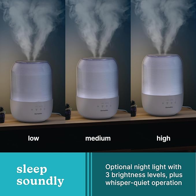 Homedics Ultrasonic Cool Mist Humidifier, Top-Fill 3L Water Tank, Covers 395 sq. ft, 35-Hour Runtime, 3 Mist Settings, Clean Tank Tech, Auto-Off, Night Light, Quiet