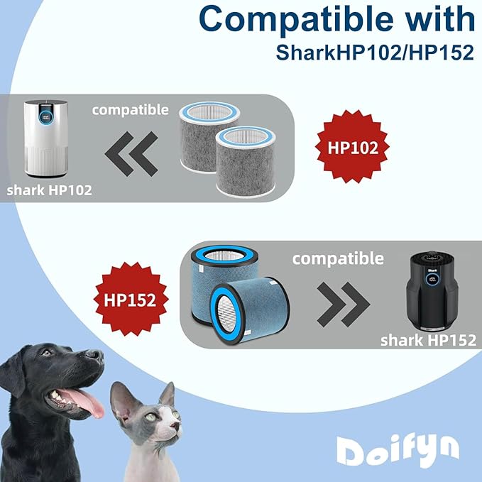 - [Replacement filter ] :Doifyn HP102 replacement filter is specially designed for Shark HP100 Series(HP100 HP102 HP132 HP152) Air Purifier & HC450, HC451, HC452, HC455 Air Purifier, Compare Part #HE1FKPET, #HE1FKBAS.Please check your machine model before purchasing!!!