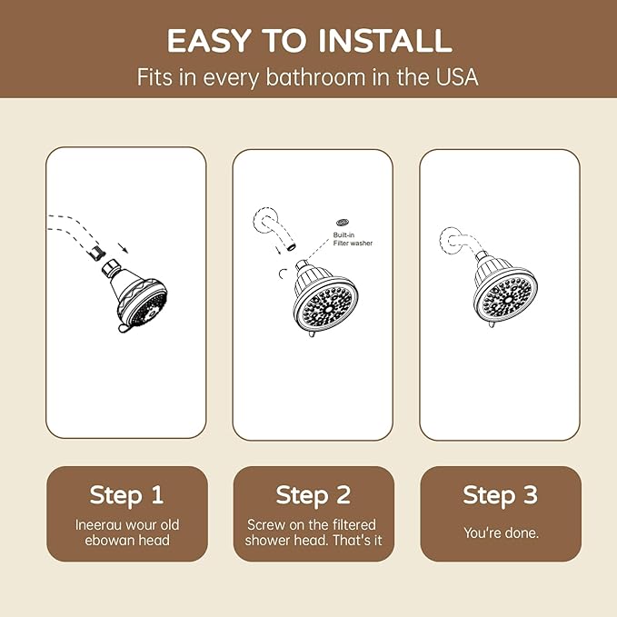 - Shower Head with Filters Easy Installation:No-Leaks and Rustproof filtered shower head for shower systems attaches to any ½-inch pipe in less than 1 min,No tools needed! To ensure performance usage, replace the filter every ​6 months​ . This ensures ​continuous protection​ against hard water, chlorine, and skin-damaging contaminants.