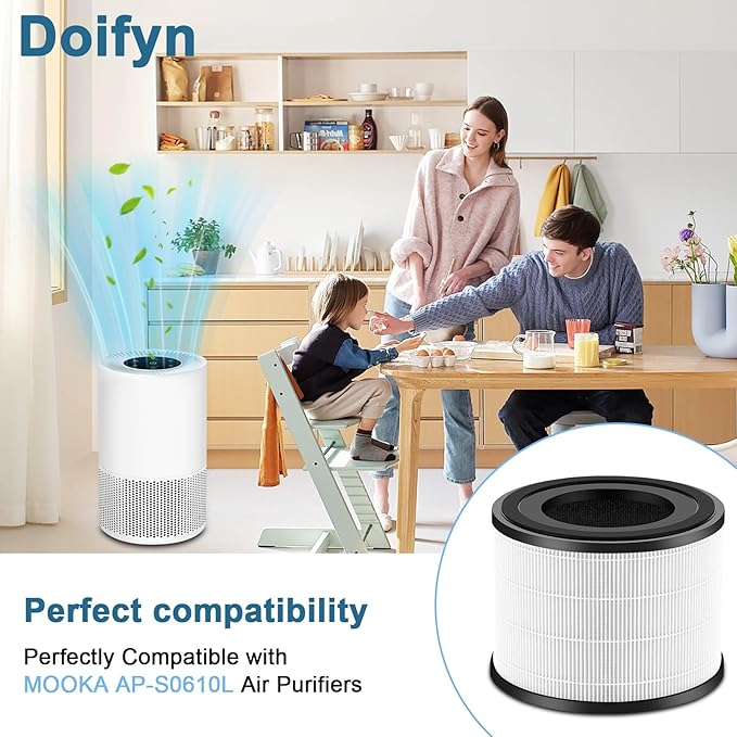 - [Compatible Models]:Doifyn AP-S0610L replacement filter is perfectly compatible with MOOKA AP-S0610L Pet Air Purifier. Note: Only compatible with the above air purifiers. Please confirm your machine model before purchasing to avoid incompatibility. Only fit AP-S0610L.