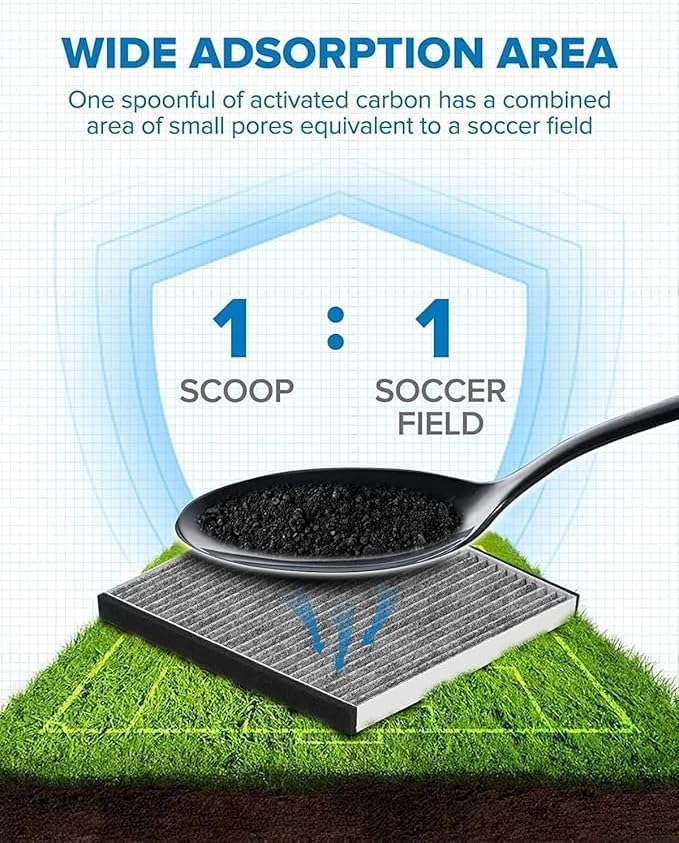 - [Enjoy fresh air] Activated carbon cabin air filter quickly adsorbs unpleasant odors from outside the ventilation system for you and provides a more comfortable interior environment for the driver and passengers