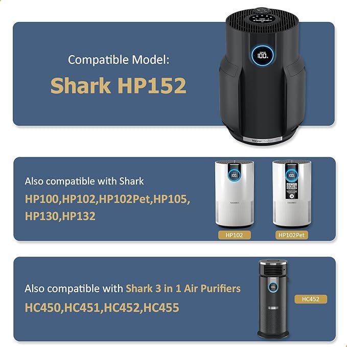 - 【Compatible Models】 --- These shark hp152 filter Compatible with shark hp152 NeverChange Air Purifier, Also Compatible with HP100,HP102,HP102pet,HP105,HP130,HP132,HC450,HC451,HC452,HC455.Please confirm your model before purchasing.