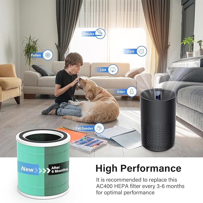- π―-ππ‘-π ππππ§π₯ππ§ππ’π‘ - Our AC400 replacement filters use 3-in-1 filtration systems, including nylon Pre-Filter, efficiency filter, and activated carbon filter, efficiently filters microns particles in the air, hair, pet fur, dander, dust, smoke, and odors