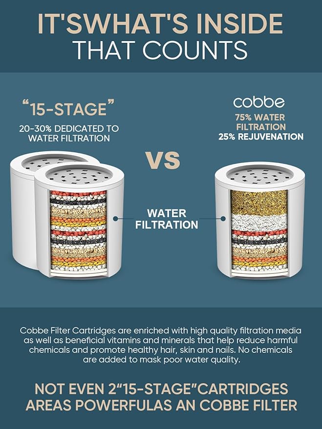 Cobbe High Output Shower Filter for Hard Water - 2 Replaceable Cartridges - Removing Chlorine and Harmful Substance, and Dramatically Improves The Condition of Your Skin, Hair and Nails - Matte Black