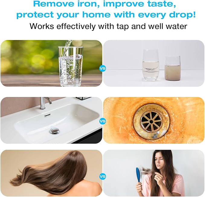 - 3-Stage Advanced Filtration: Includes a 5-micron PP sediment filter, GAC and KDF filter, and manganese sand with activated alumina filter to provide comprehensive filtration for cleaner, healthier water.