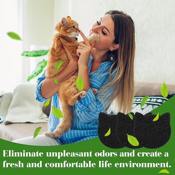 - 【Ample Quantity】: The set includes 12 kitty-shaped activated charcoal filters, ensuring continuous odor control. Replacing them every 1-3 months is recommended, depending on your specific needs. When a filter loses effectiveness, simply peel it off and stick on a new one. Trust me, it’s that easy