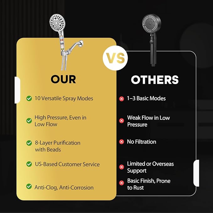 - HIGH-PRESSURE FILTERED SHOWER HEAD: Enjoy a powerful, spa-like shower while reducing chlorine, calcium, and heavy metals. Built-in 8-layer filter helps purify hard water for cleaner skin and softer hair.