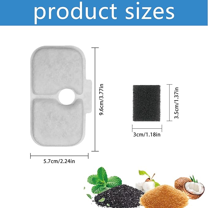 - Suggestions for Use: To prevent activated carbon dust from shedding into the water, please soak the pet fountain filter replacement in water for 10 minutes and thoroughly rinse under running water before use. Replace every 1 to 2 weeks in summer and 2 to 4 weeks in winter. If multiple cats are using the fountain, it's advisable to increase the frequency of filter replacement.