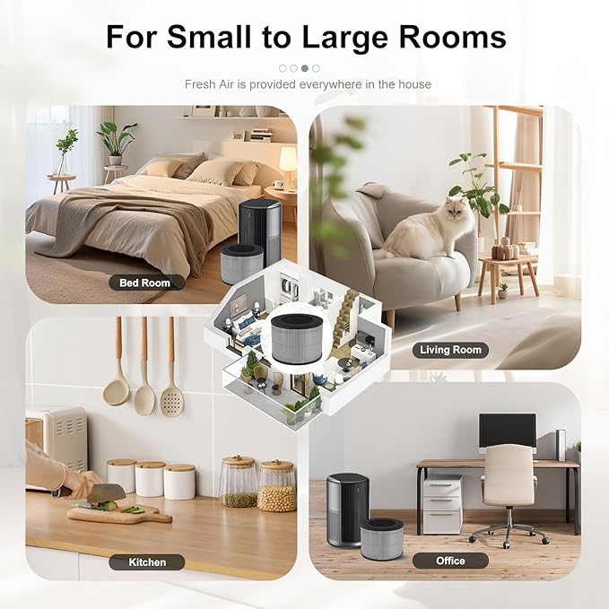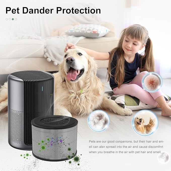 - Filter Large Particles & Unpleasant Odors: Ultra Fine Pre-Filter collects larger airborne particles like pollen, lint, fibers, dust, and dander, extending the life of the HEPA filter. And the high-efficiency activated carbon filter clears your home of unwanted neutralizes various foul odors, smokes, harmful gases, and VOCs in the air, ideal for households with pets, cooking and smokers.