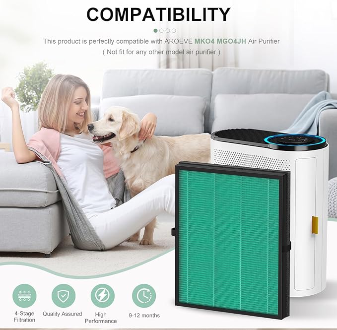 2 Pack MK04 Air Filter Replacement Compatible with AROEVE MK04 MG04JH Air Puri-Fier, 4-in-1 High-Efficiency Pollen Pet Dander Hair Filter Suitable- Pet Dander Version