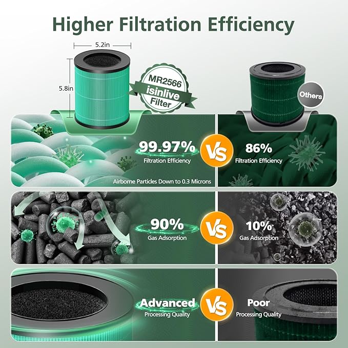 - γππππ π£ππ₯ππ’π₯π ππ‘ππγEnjoy fresh air all year round with isinlive MR2566 filter to ease uncomfortable symptoms caused by problematic air. HEPA filter works alongside the Pre-filter and High-Efficiency Activated Carbon filter to work for pet dander, and hair, and solve the problem of unpleasant odors and gases.