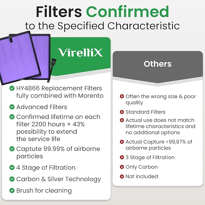 - 𝗛𝗬𝟰𝟴𝟲𝟲 𝗔𝗶𝗿 𝗙𝗶𝗹𝘁𝗲𝗿 𝗥𝗲𝗽𝗹𝗮𝗰𝗲𝗺𝗲𝗻𝘁: The pack contains of 4 pieces and brush; each filter has a service life of 3145 hours; the air purifier filter is specially designed to be compatible with MORENTO HY4866, WESTHEY HY4866 and YIOU M1 air purifiers; important to check the model before purchase