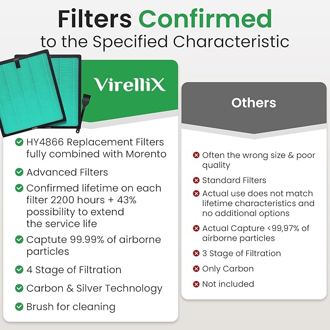 - 𝗛𝗬𝟰𝟴𝟲𝟲 𝗔𝗶𝗿 𝗙𝗶𝗹𝘁𝗲𝗿 𝗥𝗲𝗽𝗹𝗮𝗰𝗲𝗺𝗲𝗻𝘁: The pack contains of 2 pieces and brush; each filter has a service life of 3145 hours; the air purifier filter is specially designed to be compatible with MORENTO HY4866, WESTHEY HY4866 and YIOU M1 air purifiers; important to check the model before purchase