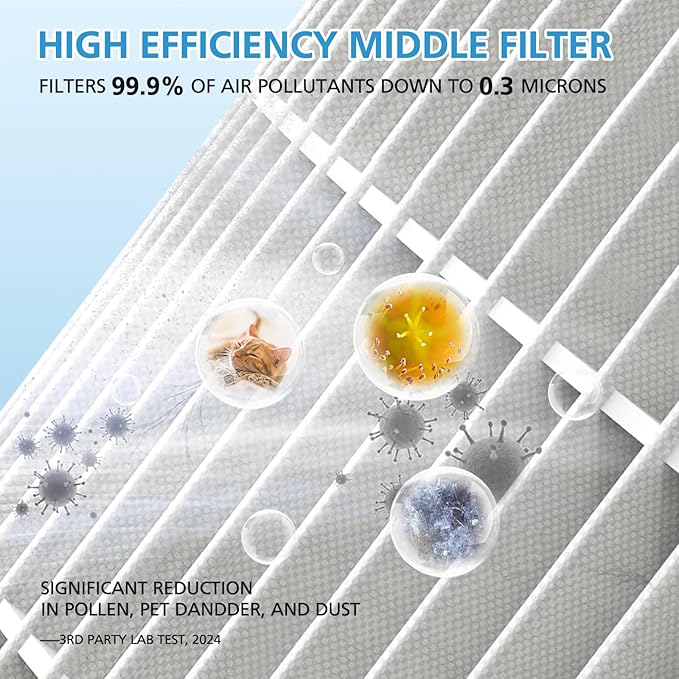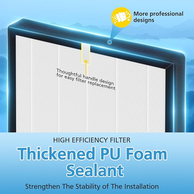 - 【HEPA WITH 2X ACTIVATED CARBON PARTICLES】Our KQ-36 HEPA filter is crafted from finely woven organic fibers, offering exceptional particle capture, large adsorption capacity, and excellent high purification efficiency. It effectively filters particles as small as 0.3 microns. The upgraded activated carbon filter layer with 2 times the number of activated carbon particles, enhances the absorption of unpleasant odors such as pet smells, fumes, and VOCs, resulting in higher and more effective purification efficiency, which ensures energy saving and a longer service life.