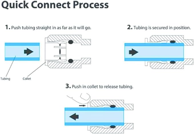 - ★EASY INSTALLATION: New generation Non-Locking Clip technology offers an easy DIY installation without tools required, Just Push in to Connect. Operated by hand, these quick connect fittings replace threaded or compression connections that demand wrenches.