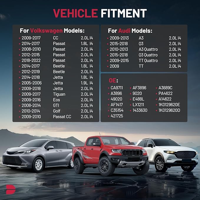 - 【COMPATIBILITY】Compatible with Audi A3 2009-2013, A3 Quattro 2010-2013, Q3 2015-2018, Q3 Quattro 2015-2018, TT 2009, TT Quattro 2009-2015;Compatible with Volkswagen Beetle 2012-2019, CC 2009-2017, Eos 2009-2016, Golf 2010-2014, GTI 2008-2014.
