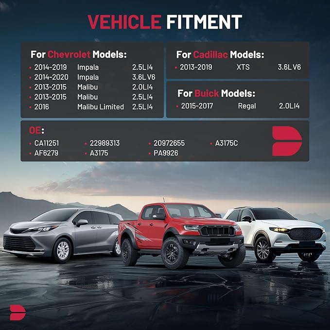 - 【COMPATIBILITY】Compatible with Buick Regal 2015-2017 2.0L; Compatible with Cadillac XTS 2013-2019 (3.6L Naturally Aspirated Only); Compatible with Chevrolet Impala 2014-2020 2.5L 3.6L; Malibu 2013-2015 2.0L 2.5L; Malibu Limited 2016 2.5L.
