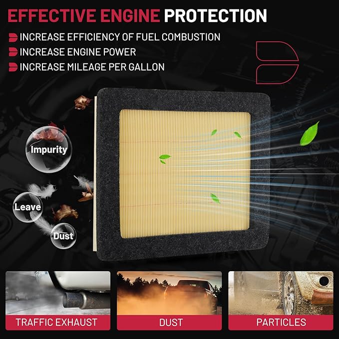 - 【SUGGESTION】To ensure that the vehicle air filter provides your engine with clean air, recommended replacement every 12 months, 12,000 miles or as specified by the vehicle manufacturer.