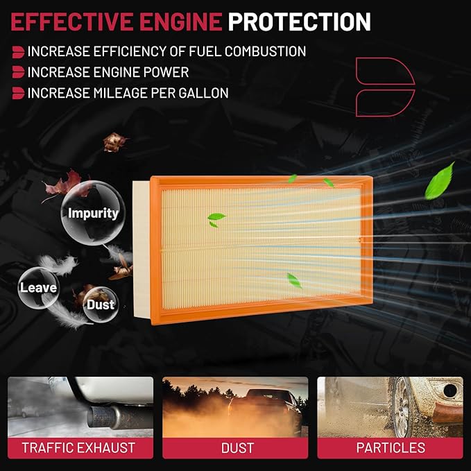 - 【SUGGESTION】To ensure that the vehicle air filter provides your engine with clean air, recommended replacement every 12 months, 12,000 miles or as specified by the vehicle manufacturer.