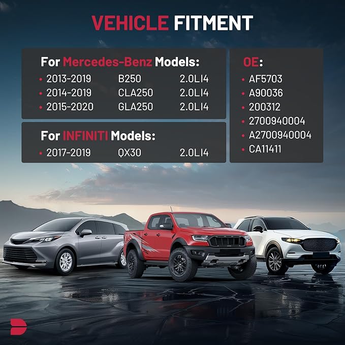 - 【COMPATIBILITY】Compatible with INFINITI QX30 2017-2019 L4 2.0L; Compatible with Mercedes-Benz B250 2013-2019 L4 2.0L; CLA250 2014-2019 L4 2.0L; GLA250 2015-2020 L4 2.0L.