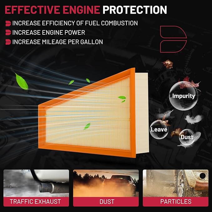 - 【SUGGESTION】To ensure that the vehicle air filter provides your engine with clean air, recommended replacement every 12 months, 12,000 miles or as specified by the vehicle manufacturer.