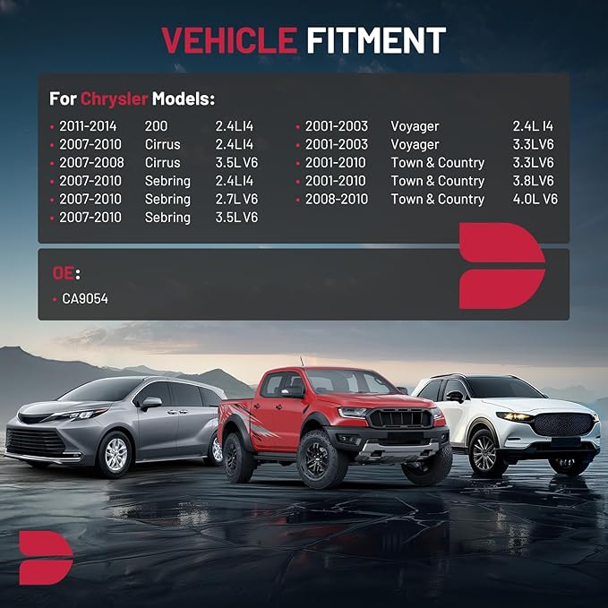 - 【COMPATIBILITY】Compatible with Chrysler 200 2011-2014, Cirrus 2007-2010, Sebring 2007-2010, Voyager 2001-2003, Town & Country 2001-2010; Compatible with Dodge Avenger 2008-2010, Grand Caravan 2001-2010, Caravan 2001-2007; Compatible with Volkswagen Routan 2009-2010.