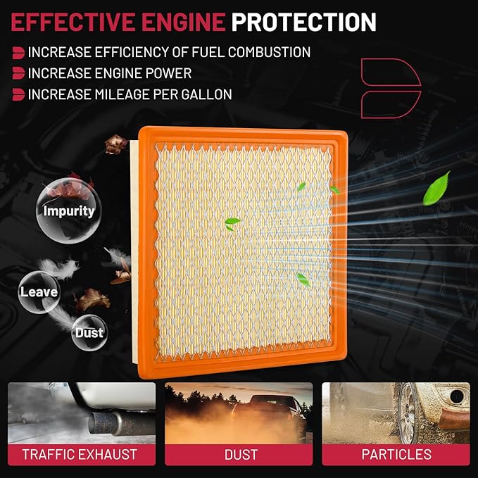 - 【SUGGESTION】To ensure that the vehicle air filter provides your engine with clean air, recommended replacement every 12 months, 12,000 miles or as specified by the vehicle manufacturer.