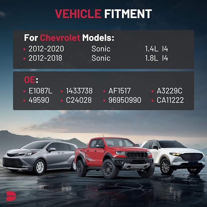 - 【COMPATIBILITY】Compatible with Chevrolet Sonic 2012 2013 2014 2015 2016 2017 2018 2019 2020 1.4L 1.8L with Flexible Panel Air Filter.