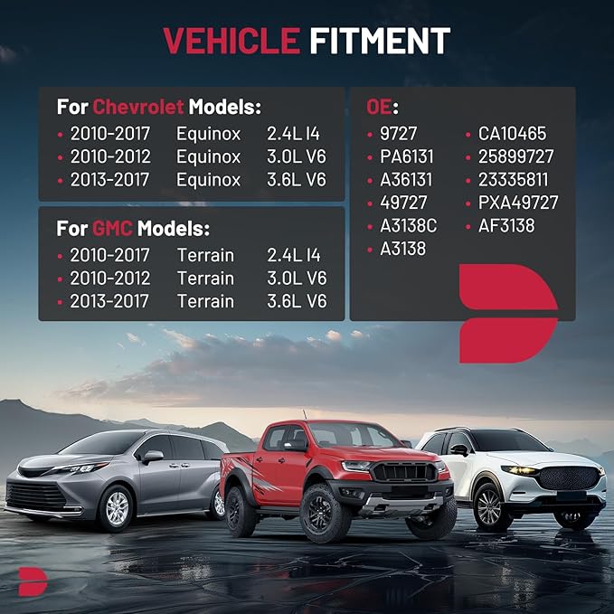 - 【COMPATIBILITY】Compatible with Chevrolet Equinox 2010-2017 2.4L 3.0L 3.6L; Compatible with GMC Terrain 2010-2017 2.4L 3.0L 3.6L