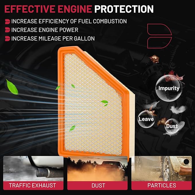 - 【SUGGESTION】To ensure that the vehicle air filter provides your engine with clean air, recommended replacement every 12 months, 12,000 miles or as specified by the vehicle manufacturer.