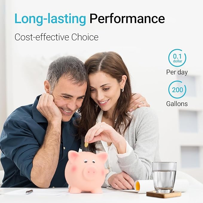 - Long Service Life: Each filter cartridge offers 200 gallons of purified water (replacing about 1600 regular 16-ounce water bottles).saving you money and reducing plastic waste.