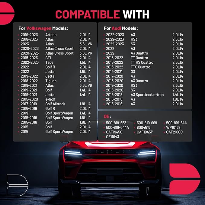 - 【Replaces Part】 5Q0-819-653, 5Q0-819-669, 5Q0-819-644, 5Q0-819-644A, 8004515, WP10159, CAF1945C, CAF1945P, CAF2160C, CF11643. Compatible with Audi Models: 2015-2020 A3/ S3/ A3 Quattro, 2016-2018 A3 Sportback e-tron, 2019-2021 Q3, 2017-2020 & 2022-2023 RS3, 2022-2023 A3/S3, 2022 A3 Quattro, 2016-2022 TT Quattro/TTS Quattro, 2018-2022 TT RS Quattro