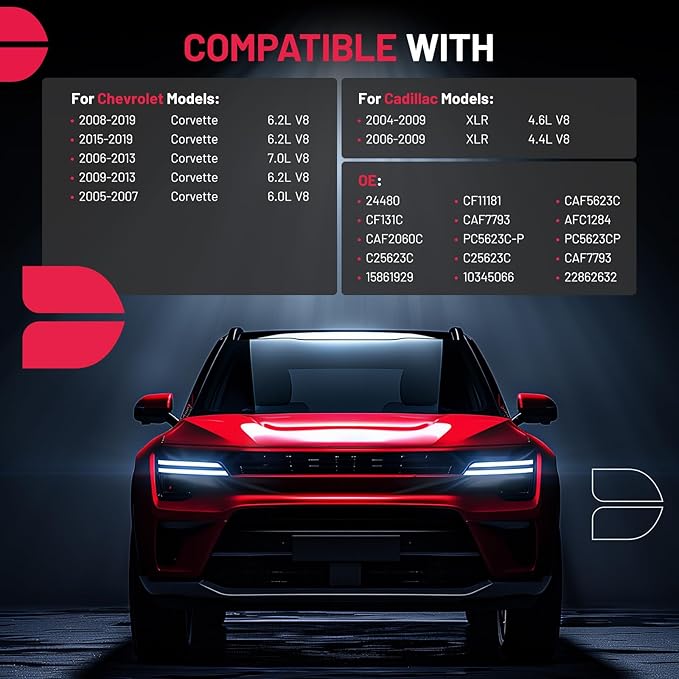 - 【Compatible Replacement】Compatible with Chevrolet Models: 2008-2019 Corvette 6.2L V8, 2015-2019 Corvette 6.2L V8, 2006-2013 Corvette 7.0L V8, 2009-2013 Corvette 6.2L V8, 2005-2007 Corvette 6.0L V8; Compatible with Cadillac Models: 2004-2009 XLR 4.6L V8, 2006-2009 XLR 4.4L V8