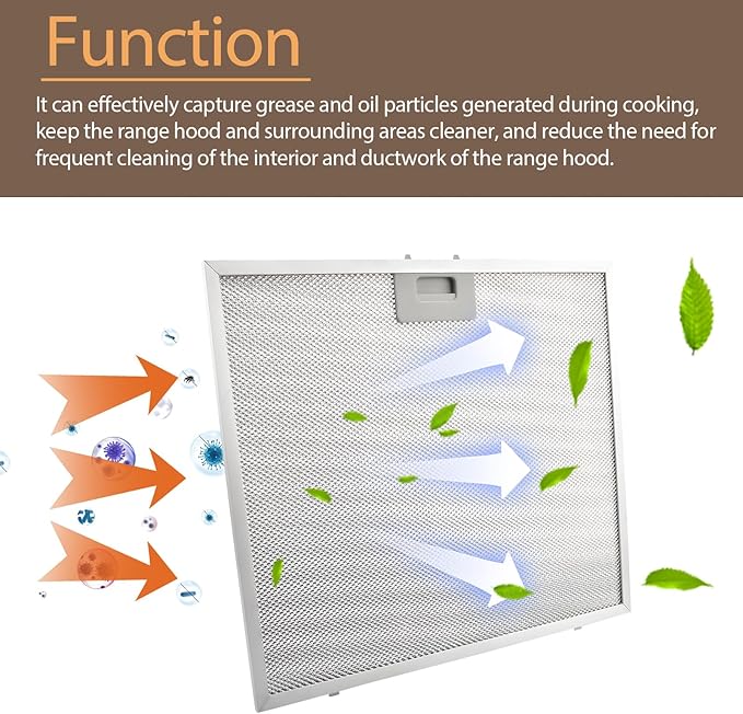 - Funtion: It can effectively capture grease and oil particles generated during cooking, keep the range hood and surrounding areas cleaner, and reduce the need for frequent cleaning of the interior and ductwork of the range hood