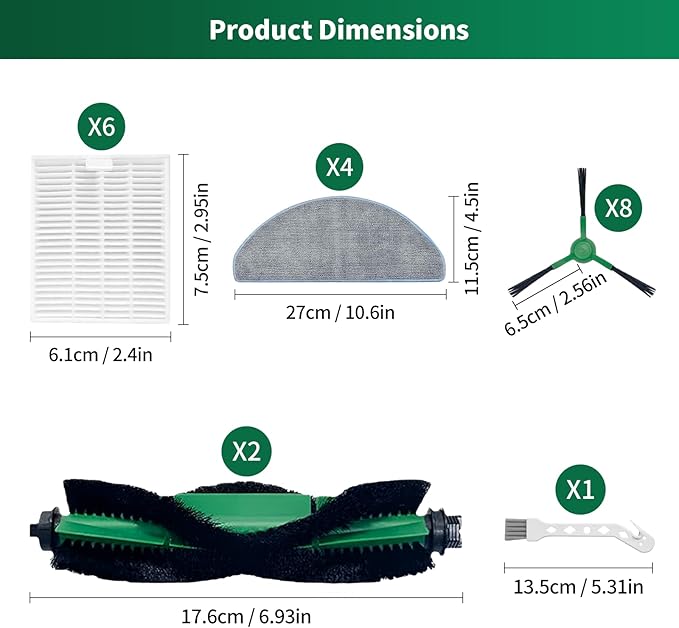 - 【Value Meal】R-oomba q0120 replacement parts have 2 roller brushes,4 mop pads,6 hepa filters,6 side brushe.Recommended to replace the sweeping brush and filter once every 2-3 months and the multi-sided rubber brush once every 6 months