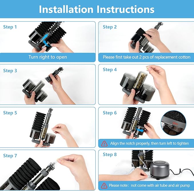 - Universal Compatibility: Compact, durable design fits tanks from 15-55 gallons;This product does not include water pump. It requires an external air pump (5W or higher) for operation, which must be purchased separately. Easy to install and clean, perfect for beginners and experts alike!