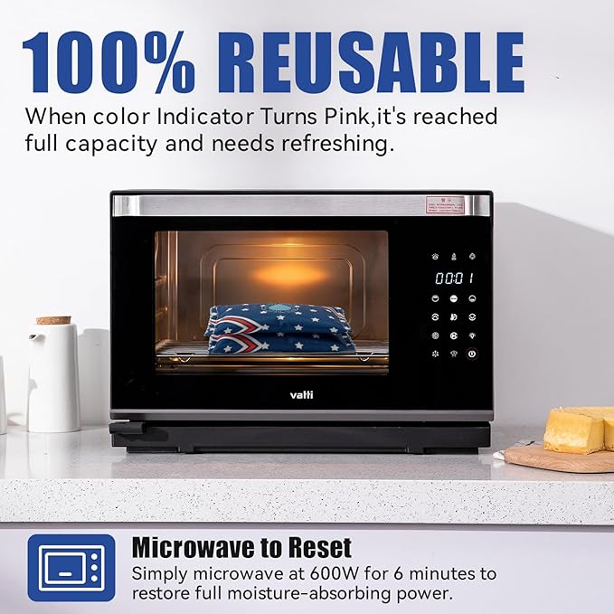 - Long-Lasting Freshness - Reusable! When it’s time to recharge, simply microwave the bags for 6 minutes to restore their moisture-absorbing power.