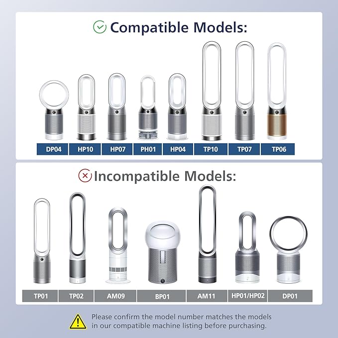 - ๐๐ง๐๐จ๐ฆ๐ฉ๐๐ญ๐ข๐๐ฅ๐ ๐๐จ๐๐๐ฅ๐ฌ - โ ๏ธ๐ซThis 360 combi glass hepa filter for is incompatible with Dyson models TP01, TP02, AM11, HP01, HP02, DP01, DP02, DP03, and HP03. Please make sure your air purif-ier model before purchasing