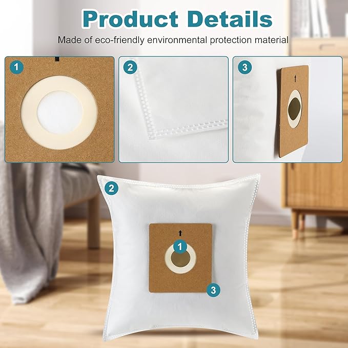 - 【High-Quality Dust Bags】 Using advanced sealing technology and selected high-quality materials, the risk of leakage or rupture of the vacuum cleaner's garbage bag is significantly reduced, ensuring that all impurities are firmly locked inside the bag, preventing any pollution to the home environment. Attention: In order to maintain the best performance of the vacuum cleaner and avoid weakening of suction or damage to the vacuum bag, please replace the vacuum bag with a new one when the garbage bag is filled to about 2/3 capacity