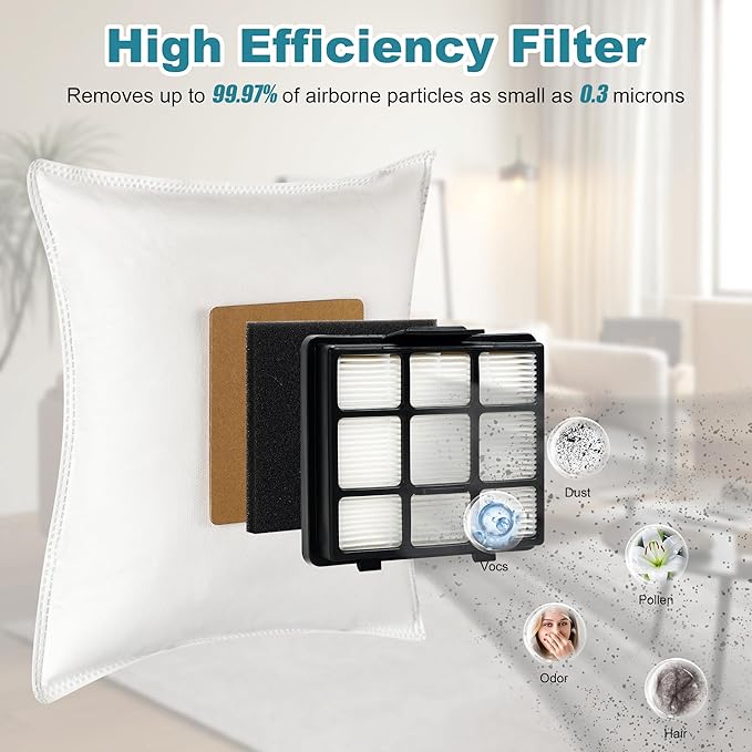 - 【High Efficiency Filter】 The filter is made of high-toughness HEPA filter paper and durable ABS material, specifically designed for use with your vacuum cleaners. It effectively blocks up to 99.97% of fine dust, including tiny particles, pollen and allergens down to 0.3 microns. We aim to create a fresher and more comfortable home for those who wish to breathe fresh air. This is the right choice for you