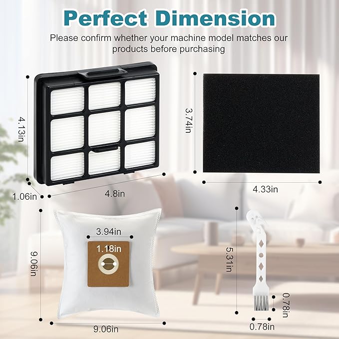 - 【Great value combo set】Keep your home clean and comfortable with our comprehensive cleaning combo set that includes 10 Dust Bags, 2 Inlet Sponge Filters, 1 HEPA Filter and 1 Cleaning Brush. Compare to Part 12475000000154, 12475000000337, 12175000095402