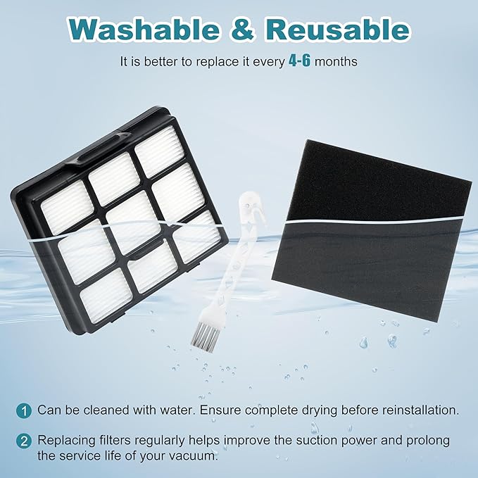 - 【Washable & Reusable】Maximize cost-efficiency by rinsing our filters thoroughly with clean water, allowing them to dry thoroughly, and reusing them. For peak performance, we recommend replacing the filter set every 2-3 months to help extend the lifespan of your vacuum cleaner