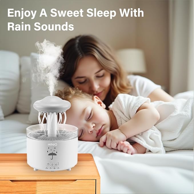 Rain Cloud Humidifier Water Drop,Octopus Aromatherapy Humidifier with 7 Colors LED Night Light with Remote Control for Bedroom Sleep Relaxation (White)