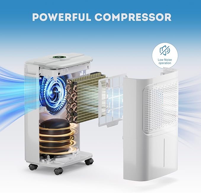 - High-Efficiency Dehumidification:Blauwhal dehumidifiers can remove up to 30 pints of moisture daily and adjust humidity from 30% to 80%, You can keep your place in the ideal 45%-55%. Perfect for basement, Office, Living Room, Bedroom, Garage, Laundry Room, Closet, RV, etc