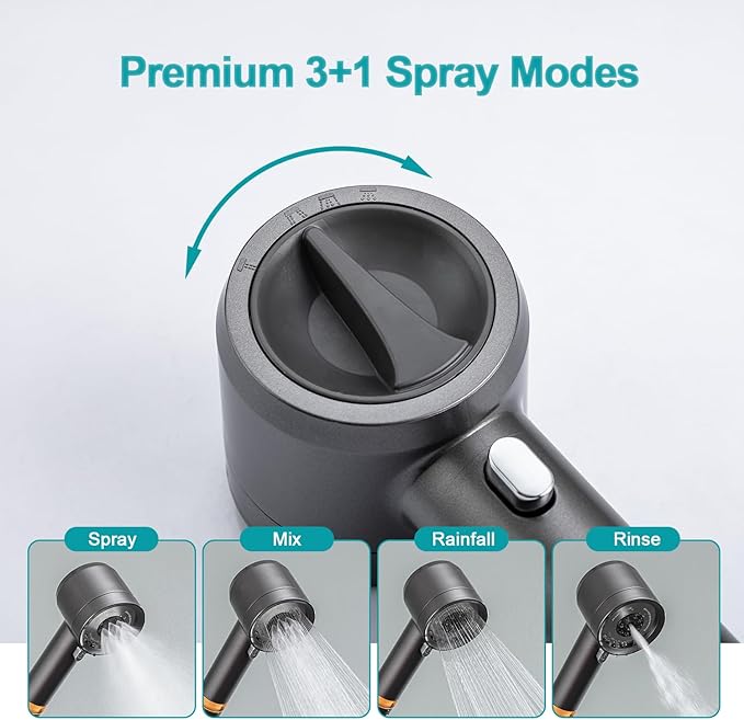 - 【4 Spray Modes Shower Head】This detachable showerhead with a hose features a handheld design with 4 practical spray settings(Rain, Massage, Mist, Power Wash modes, and stop button) It meets various needs without complex settings for ease of use. The high flow showerhead set with handheld includes the shower head, 79inch stainless steel hose, adjustable overhead bracket, low-reach adhesive shower holder and accessories like anti-leak Teflon tape and extra 2 Filter.NO TOOLS OR PLUMBER ARE NEEDED. PLEASE DO REMEMBER TO USE THE ATTACHMENT TAPE WHEN YOU INSTALL THE SHOWER HEAD AND BRACKET IN CASE THE LEAK!