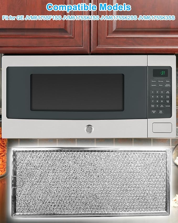 - Compatible Models: Microwave grease filter fit for GE JVM6175SF1SS JVM6175SK1SS JVM6175SK2SS JVM6175SK3SS microwave oven, Size: Length: 13.38", Width: 5.87"; please carefully check the size and model of the product pictures before purchasing